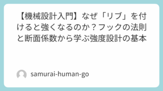 ALL 【機械設計入門】なぜ「リブ」を付けると強くなるのか?フックの法則と断面係数から学ぶ強度設計の基本 こんにちは、Tech Samuraiです!前回の記事「ヤング率の早見表」では、材料そのものが持つ「硬さ(変形しにくさ)」について探検しました。しかし、製品の強度は、材料だけで決まるわけではありません。同じ材料、同じ重さでも、その「形状」によ... 2025.09.19 ALLハードウェア