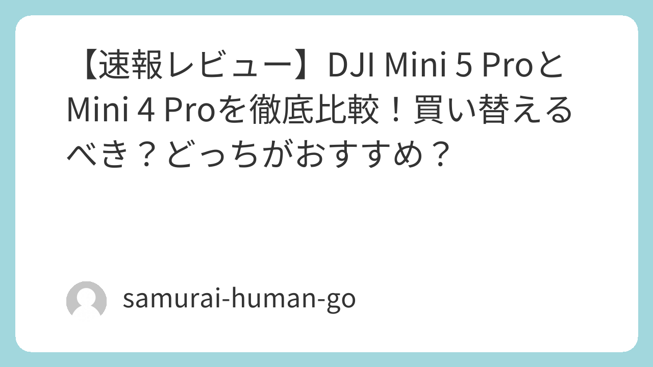 一方で、DJI Mini 4 Proも名機であることに変わりはありません。価格と性能、そして「型式認証」という業務上のメリットを天秤にかけ、自分にとって最適な一台を見つけることが重要です。さて、Tech Samuraiはどちらを選ぶのか…今後の展開にご期待ください!