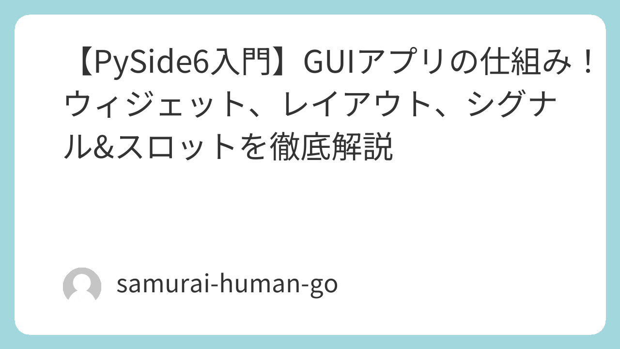 今回の記事は、そんな疑問に答えるための**PySide6の基礎講座**です。GUIアプリケーションがどのような「部品」と「仕組み」で成り立っているのか、その3つの核心的な概念、**「ウィジェット」「レイアウト」「シグナル&スロット」**について、一つずつ丁寧に探検していきます。この土台を理解すれば、あなたのGUI開発能力は飛躍的に向上します!
