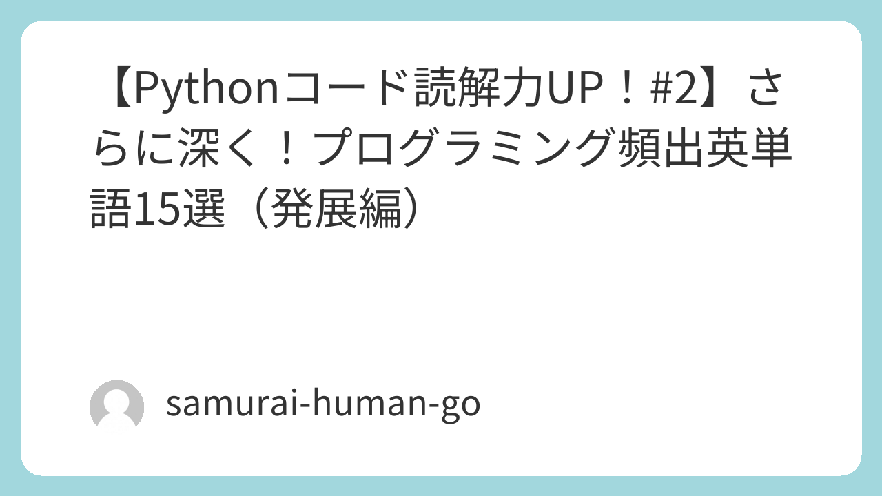 前回の記事「【Pythonコード読解力UP!】プログラミング頻出英単語15選(基本編)」では、変数や関数、基本的なデータ型といった、Pythonの骨格となる英単語を探検しました。