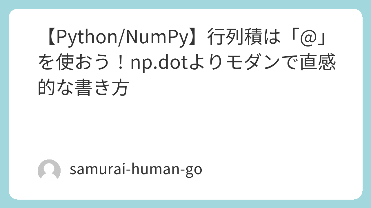 しかし、Python 3.5以降、この行列積の計算を、まるで数式のように美しく、そして直感的に書ける`@`演算子が登場したことをご存知ですか? 今回は、このモダンな`@`演算子の使い方と、`np.dot()`との違いについて探検します!