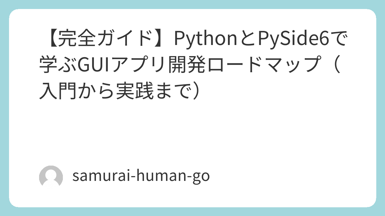 この記事は、これまで私が書き溜めてきたPySide6に関する記事を、**初心者がゼロから学び、実践的なアプリを開発できるようになるまで**の学習ロードマップとして再編成した、「まとめ記事(ピラーページ)」です。このページをブックマークして、あなたのGUI開発の旅にお役立てください!