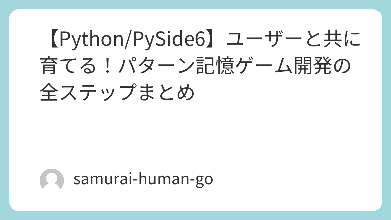 今回は、PythonとGUIライブラリ`PySide6`を使い、古典的な記憶力ゲーム「パターン記憶(Simon Says)」を開発した際の、**企画から完成までの全ステップ**を振り返ります。