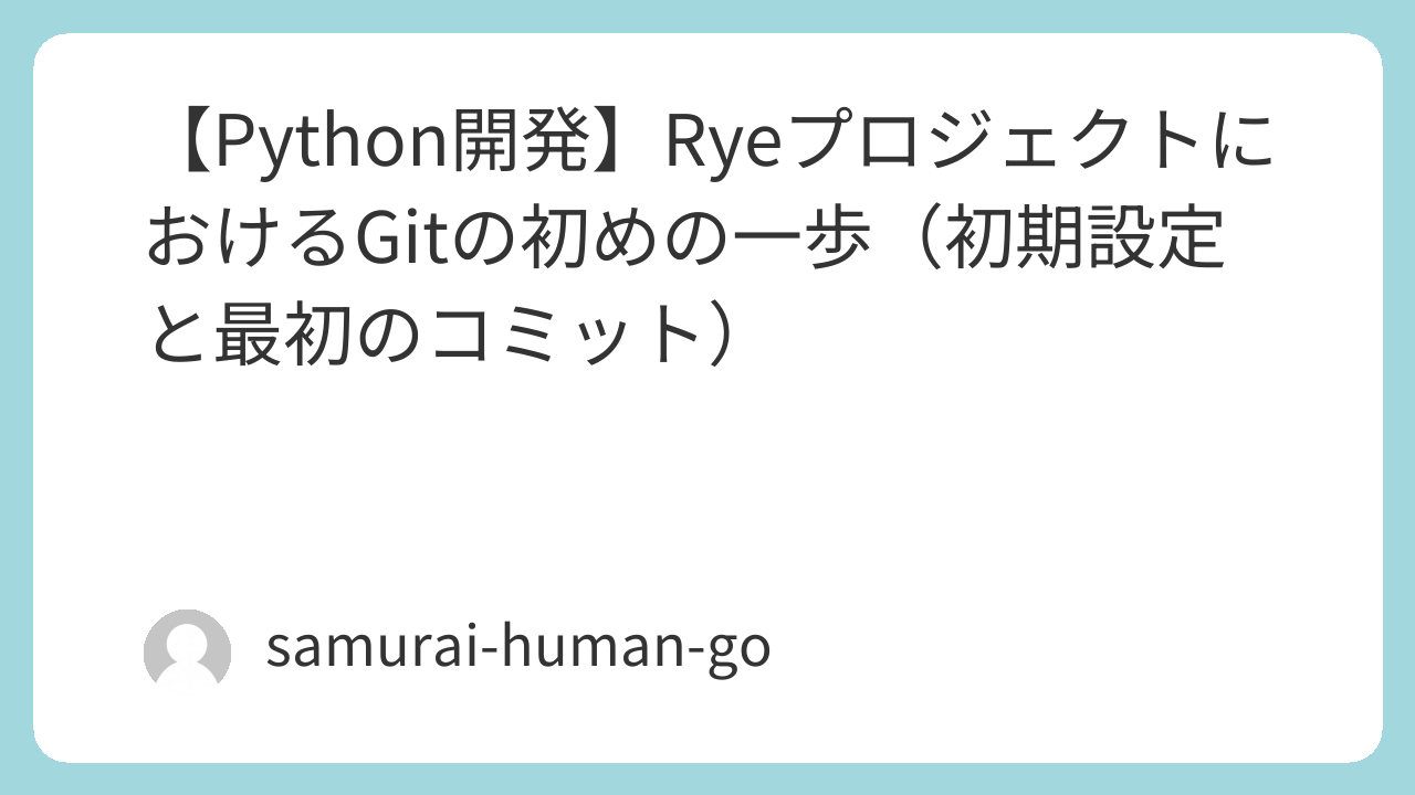 【Python開発】RyeプロジェクトにおけるGitの初めの一歩(初期設定と最初のコミット)