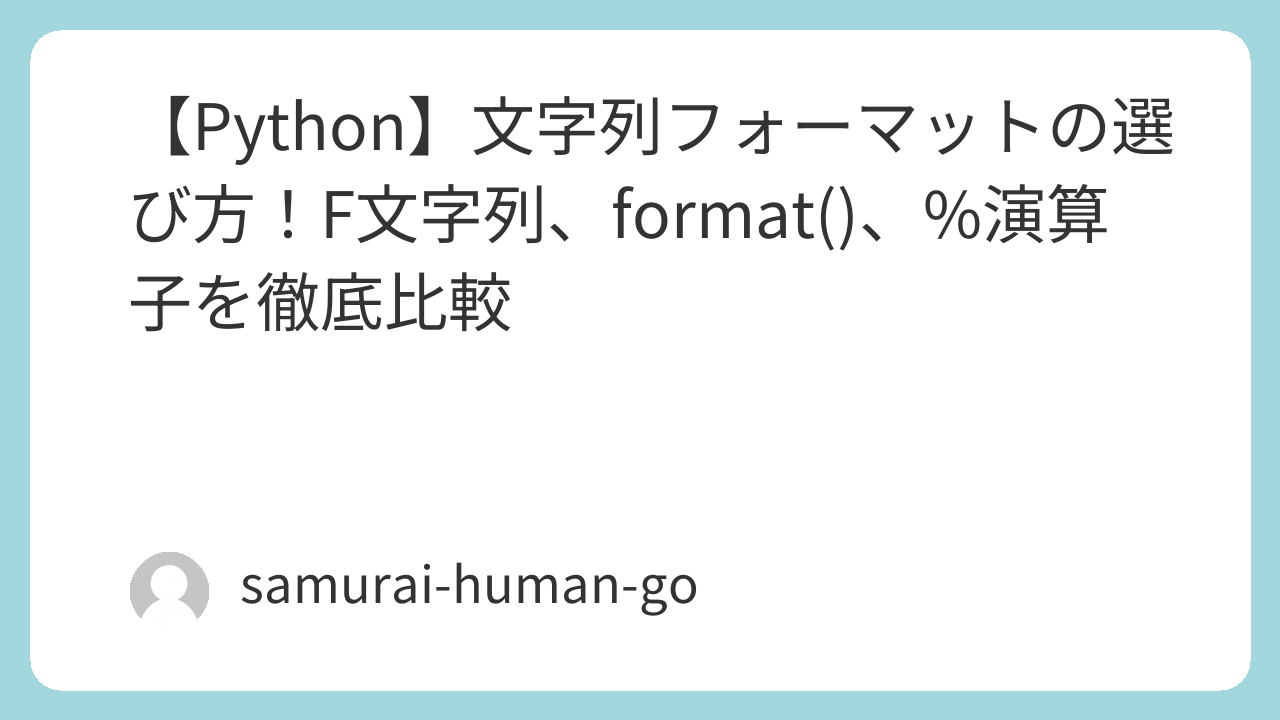 (浮動小数点数) といった、異なる記号を使い分ける必要があります。 - 可読性の低さ: 変数と指定子の対応関係が分かりにくく、タプルで渡す変数の数がずれるとエラーになりやすいです。