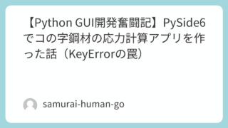 ALL 【Python GUI開発奮闘記】PySide6でコの字鋼材の応力計算アプリを作った話(KeyErrorの罠) こんにちは、Tech Samuraiです!今回は、少し専門的ですが「コの字型鋼材の応力計算」をテーマに、Pythonで便利なデスクトップアプリを開発したプロセスをご紹介します。Pythonに標準で入っているtkinterで手軽に作り始めるこ... 2025.09.19 ALLPythonソフトウェア